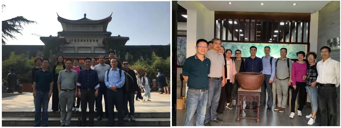 宜兴是历史悠久的陶都。午后,创新院党支部一行前往宜兴市陶瓷博物馆和当地知名紫砂企业,了解紫砂矿的特点和紫砂泥的练制过程,“追根溯源”,并欣赏紫砂藏品。紫砂文化是中国陶瓷文化艺术中的一支奇葩。紫砂器的制作工艺已列入国家非物质文化遗产予以保护。通过参观学习,全体党员同志们收获颇丰,不仅对紫砂技艺有了初步的认识,浅尝辨别和欣赏之道,同时深刻认识到中华文明源远流长,文化遗产丰厚,进一步激发了对中华文化的热爱和自豪之情,加深了对中华传统文化的内部继承和对外输出的认识,进一步增强了文化自信。