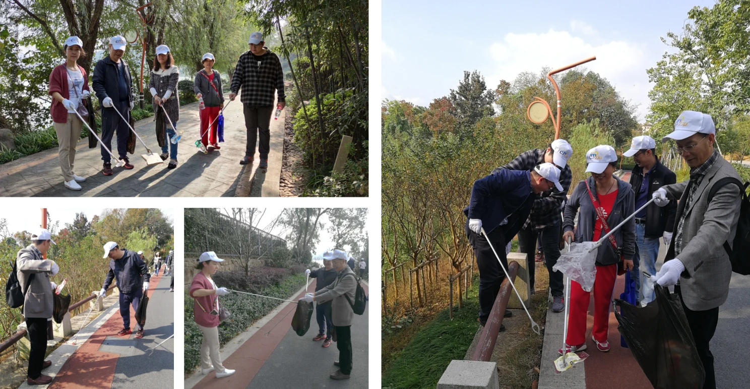 走上绿道,身畔是阵阵清风,脚下是漫漫堤坝,头上是碧蓝天空。好一个“绿水青山”!在这自然风韵之中,有鸟儿欢歌,也有花草轻舞,步行于这长长的绿道之上,只觉心旷神怡!浙大创新院全体党员拿着垃圾袋与擒捡杆,在美丽之间寻觅绿色背后的点点杂色,将这些垃圾清理出来。