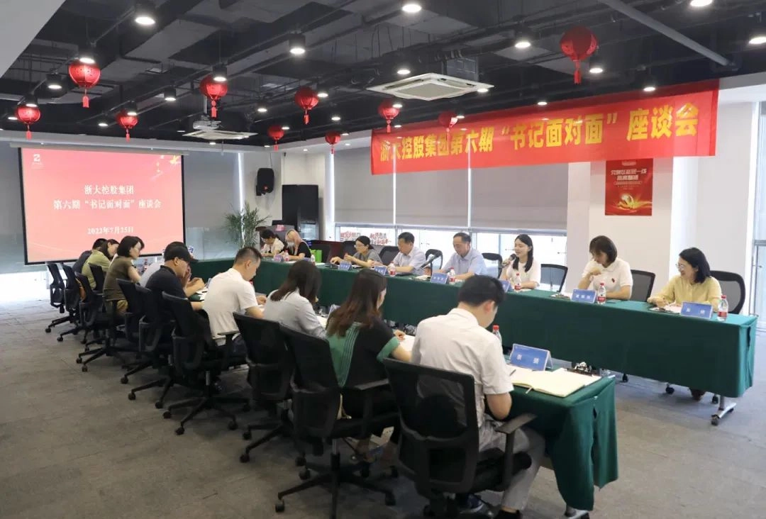 7月25日下午,浙大控股集团第六期“书记面对面”活动在浙大创新院举行。集团党委书记、董事长徐金强,党委副书记、工会主席林旭昌出席会议,与集团各基层党组织“事业之友”党员和结对群众代表面对面交流。本次活动由浙大创新院党支部承办。