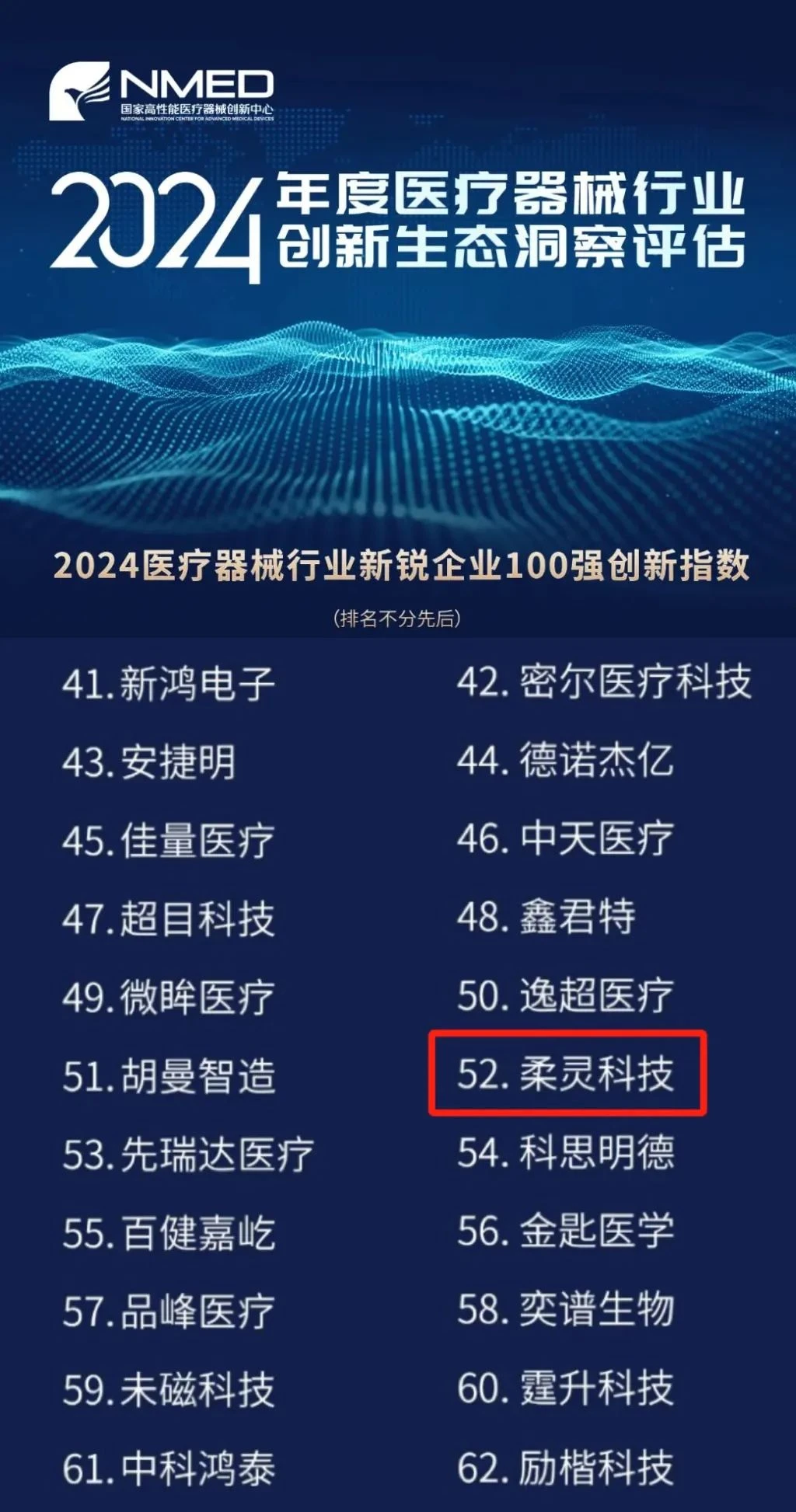 柔灵科技入选2024医疗器械行业新锐企业100强