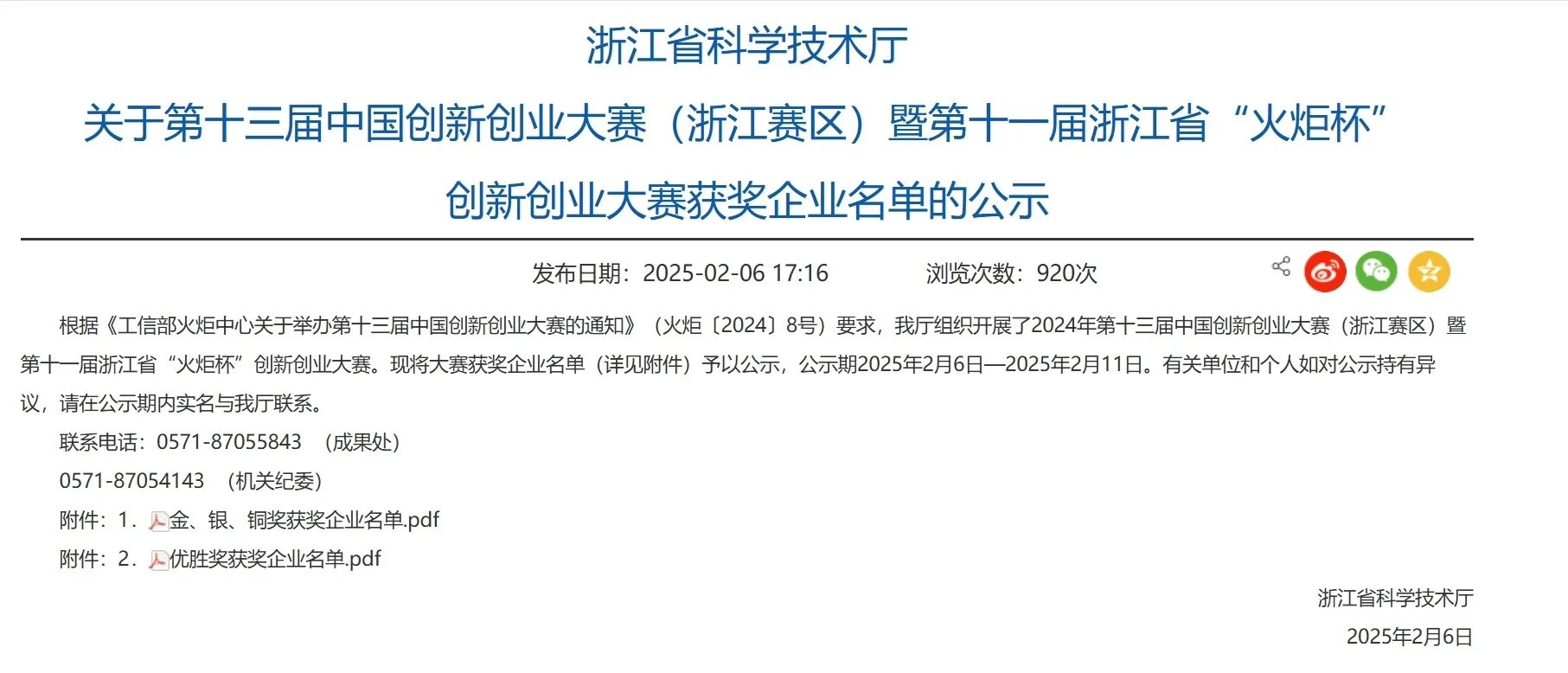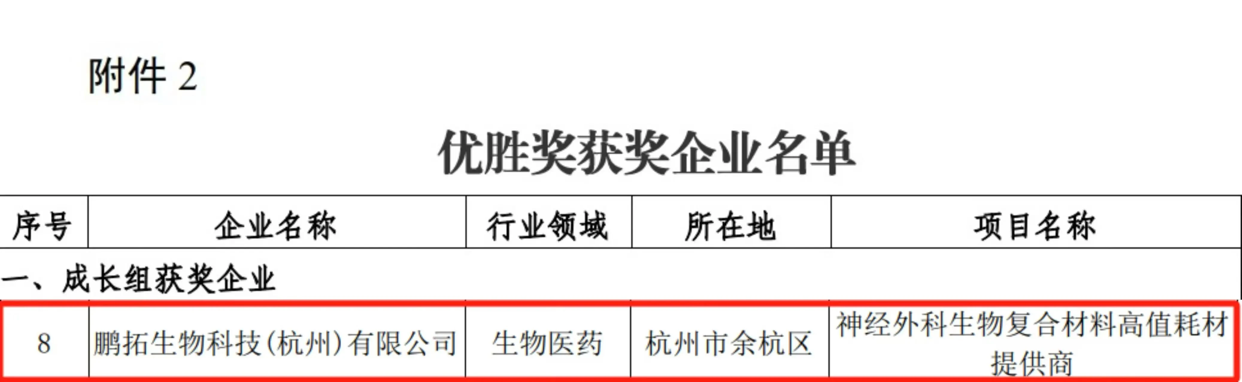 近日,浙江省科学技术厅公布了2024年第十三届中国创新创业大赛(浙江赛区暨第十一届浙江省“火炬杯”创新创业大赛获奖企业名单,鹏拓生物科技(杭州)有限公司携“神经外科生物复合材料高值耗材提供商”荣获大赛优胜奖。